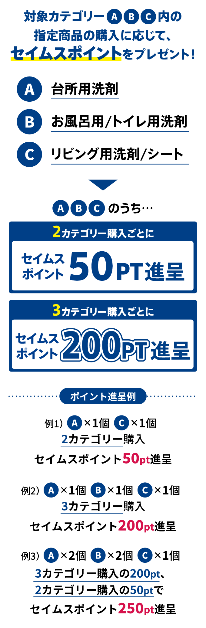 購入カテゴリー数に応じて、セイムスポイントをプレゼントいたします。