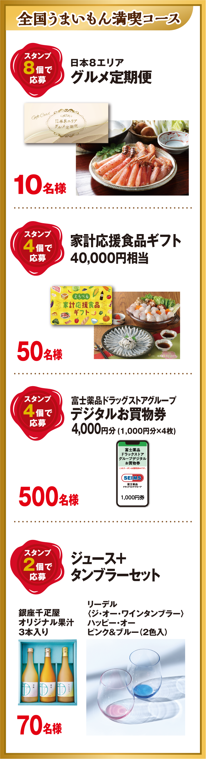 獲得スタンプ数に合わせて、豪華賞品が当たる抽選に挑戦可能!