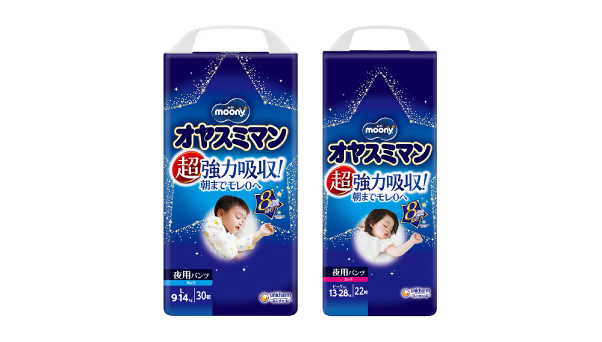 ●「360°モレ徹底ガード構造」オヤスミマン独自のフィット構造、足回りの「寝返りピタッとギャザー」とお腹回りに優しくフィット「すっぽりハイウエスト」でモレを徹底ガード。