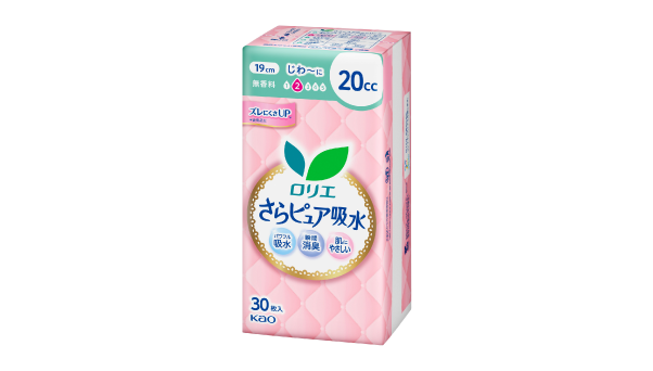 瞬間吸収のロリエ 極うすなのに頼れる2倍吸収※1 ベタつき ゴワつき ムレなしへ 独自のストレスフリー設計 )※1当社「ロリエ肌きれいガードふつうの日用羽つき」との比較(医薬部外品)