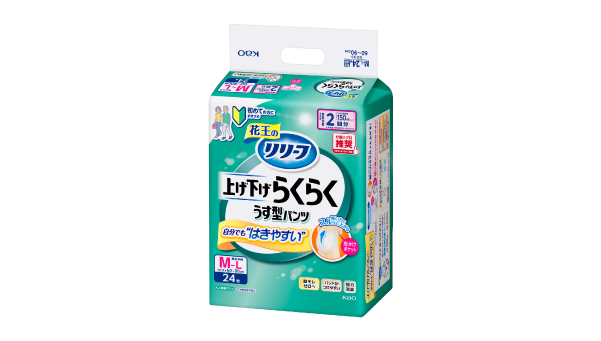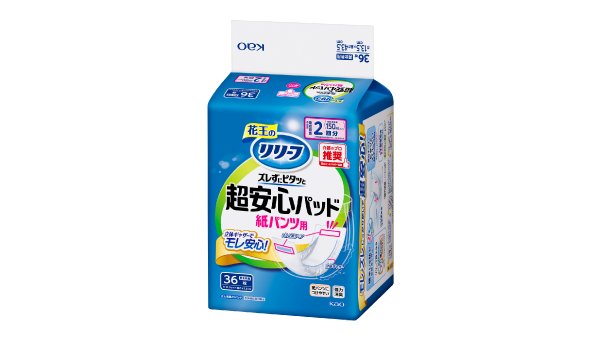 リリーフは、紙パンツにまっすぐつけやすく、モレ・ズレをしっかり防ぐ尿とりパッドです。