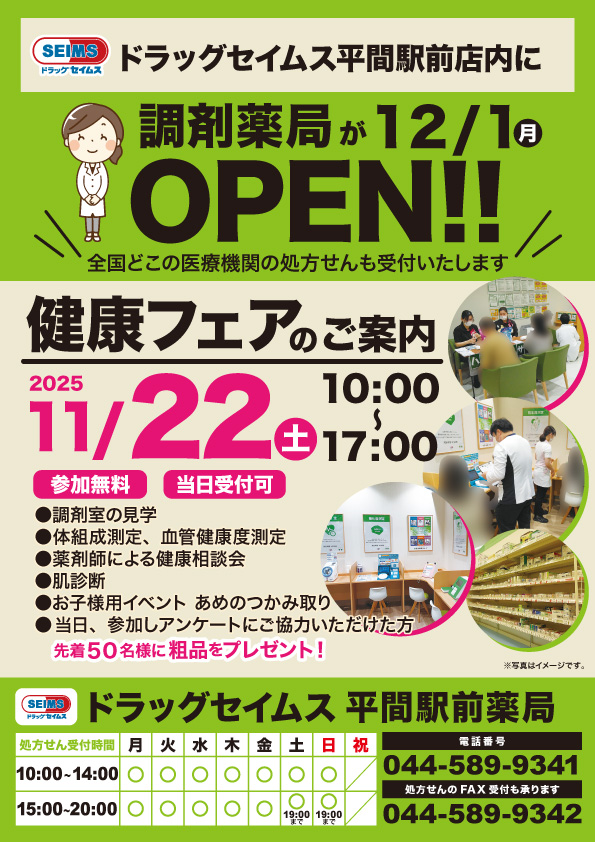 平間駅前薬局 健康フェアのご案内 11/22(土)